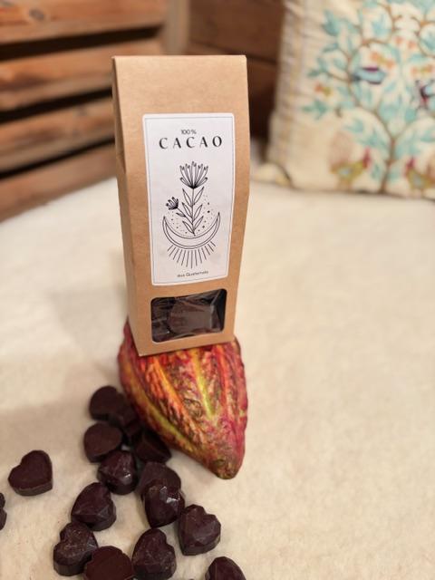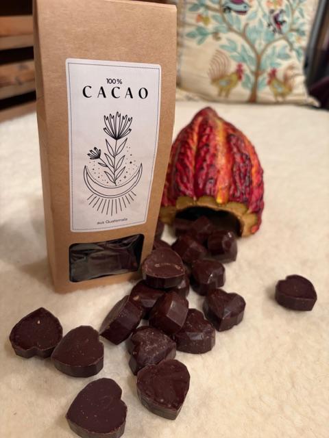 Die Bohnen erhalten wir direkt von Bauern aus Guatemala. Sie werden geröstet, von der Schale befreit und die Nips zusammen mit Cacao Butter ca 20 Std in einem Melangeur zu einer cremigen Masse gerührt, anschließend in eine Diamantherzform gegossen und liebevoll für dich verpackt.
